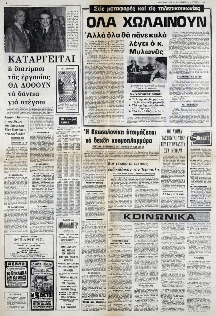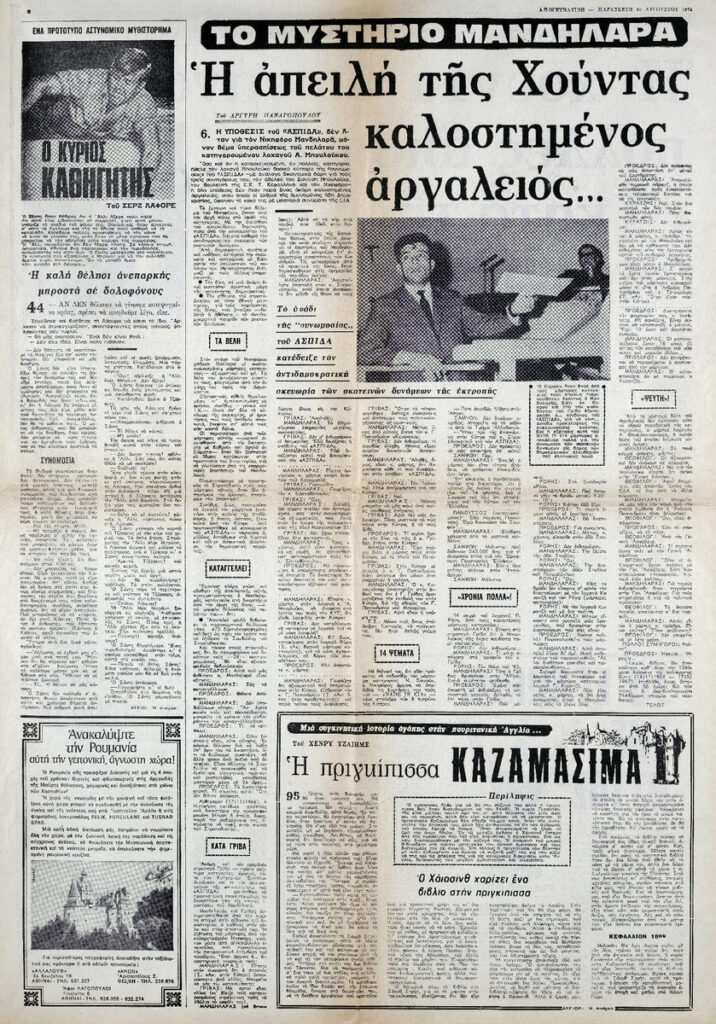 Απόκομμα της εφημερίδας “Απογευματινή” (30/08/1974).