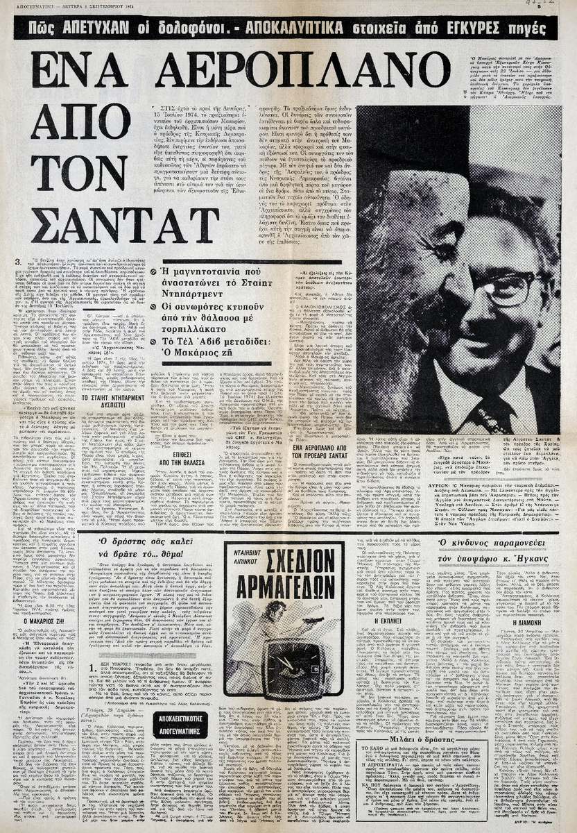 Απόκομμα της εφημερίδας “Απογευματινή” (02/09/1974).
