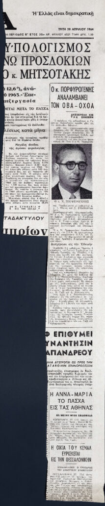 Απόκομμα της εφημερίδας «Ελευθερία» (28/04/1964).