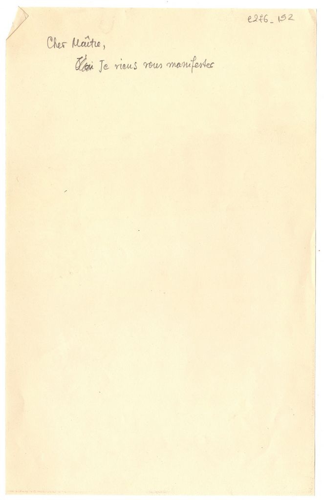 Απόκομμα χαρτιού, με χειρόγραφη σημείωση/ αρχή επιστολής του Τώνη Σπητέρη, με μολύβι στα γαλλικά.