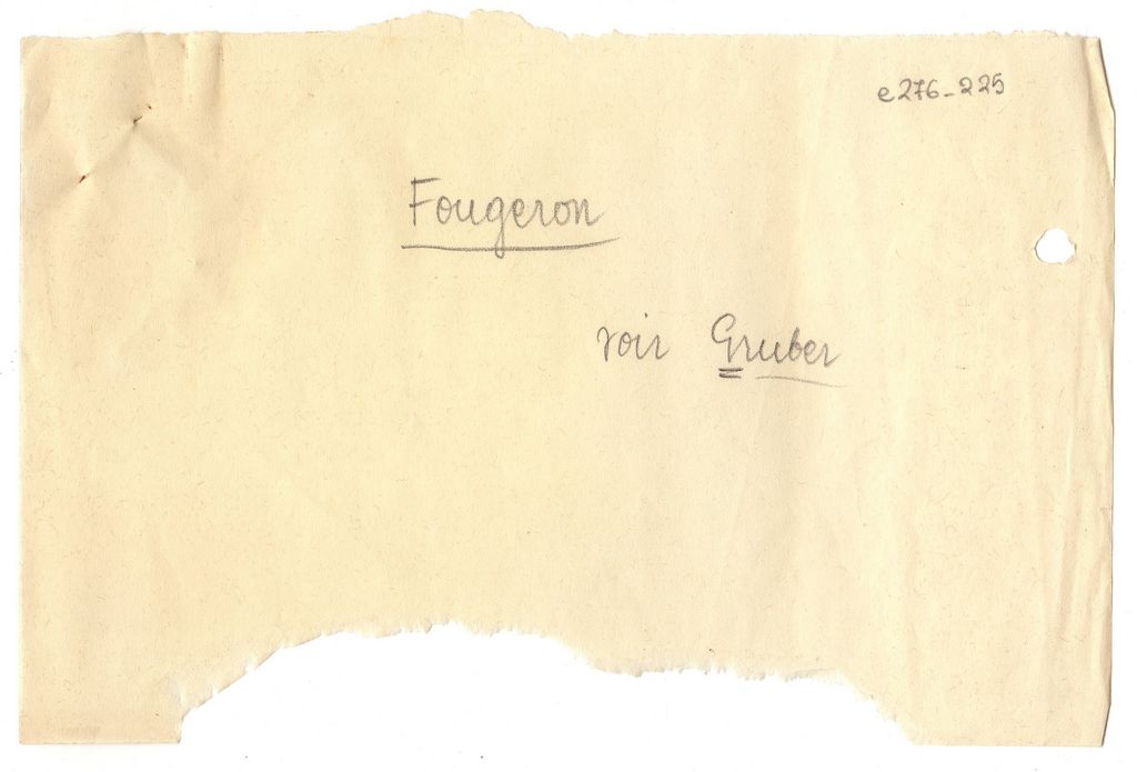 Απόκομμα χαρτιού ακανόνιστου μεγέθους, στα γαλλικά, με χειρόγραφη με μολύβι στα γαλλικά σημείωση του Τώνη Σπητέρη, με παραπομπή για τον André Fougeron.