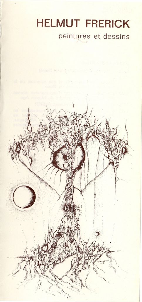 Πρόσκληση και έντυπο, χαρτί δίπτυχο, 21×10 εκ., στα γαλλικά, έκθεσης του Helmut Frerick στο Centre Culturel Allemand στο Παρίσι. Στο εσωτερικό του εντύπου, βιογραφικό του καλλιτέχνη και κείμενο για το κίνημα “Amber”.