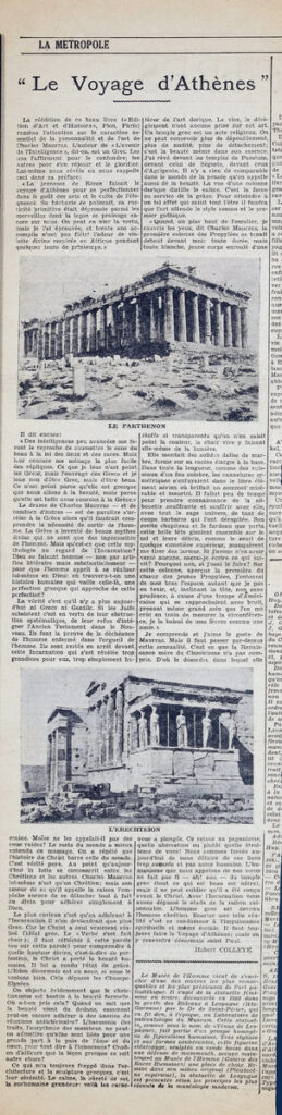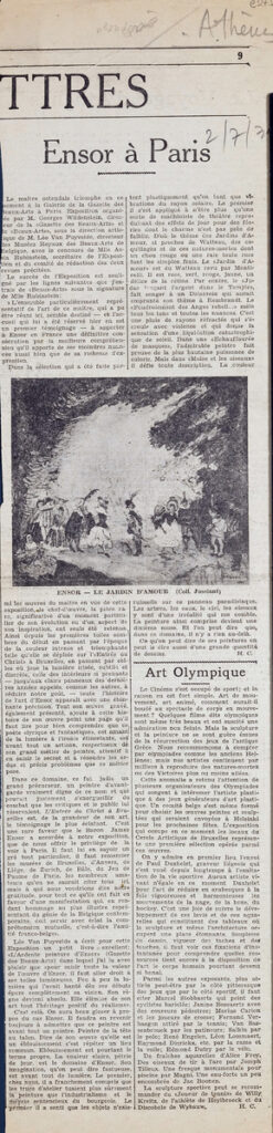 Απόκομμα, χαρτί, 60×14 εκ., στα γαλλικά, δημοσίευσης κριτικής έκθεσης του James Ensor στο Παρίσι.