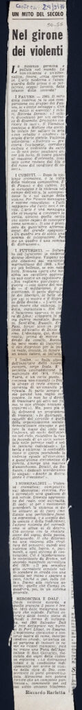 Απόκομμα του ημερήσιο ή περιοδικού τύπου, έντυπο, στα ιταλικά, χαρτί, μία όψη.
