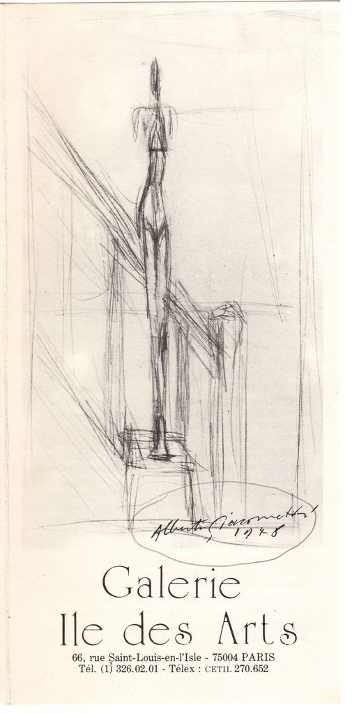 Έντυπο, στα γαλλικά, δίπτυχο, χαρτόνι, 21,5×10,5 εκ. Πρόσκληση των εγκαινίων ομαδικής έκθεσης ζωγραφικής και γλυπτικής με συμμετοχή των Bosquet, Bouquillon, Collamarini, Correia, Couturier, Delisle, Deyme-Lange, Fenosa, Gestalder, Giacometti, Kretz, Letourneur, L. Leygue, R. Marin, Mougin, Ghana Orloff, G. Oudot, Signori, που διοργανώθηκε στο Παρίσι το 1983. Περιλαμβάνει κείμενο του Cécile Goldscheider.