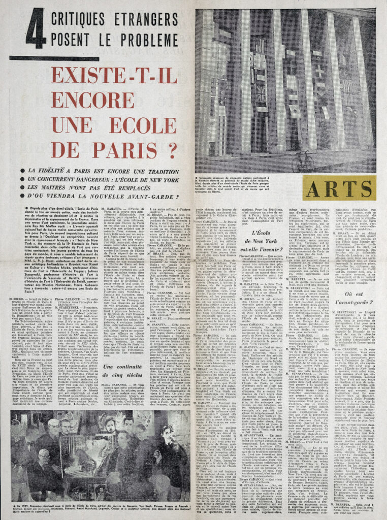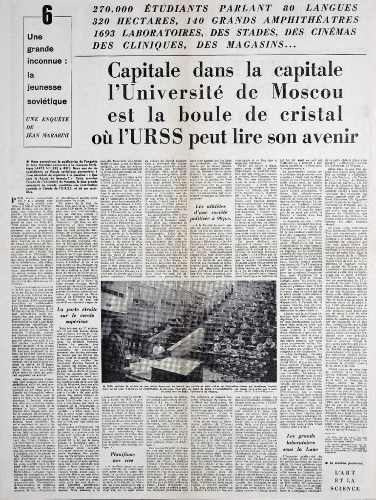 Απόκομμα του περιοδικού “Arts”, 11-17/10/1961, έντυπο, στα γαλλικά, χαρτί, διπλής όψης, 59,5×42 εκ. Το απόσπασμα εικονογραφείται. Πάνω δεξιά, επιγραφή με τα στοιχεία έκδοσης.Στο ίδιο απόκομμα: J. Maribini “Capitale dans la capitale l’ Université de Moscou est la boule de cristal où l’ URSS peut lire son avenir”.