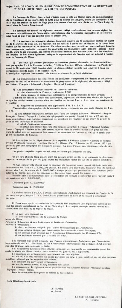 Avis de concours pour une oeuvre commemorative de la resistance et de la lutte pour la liberté des peuples