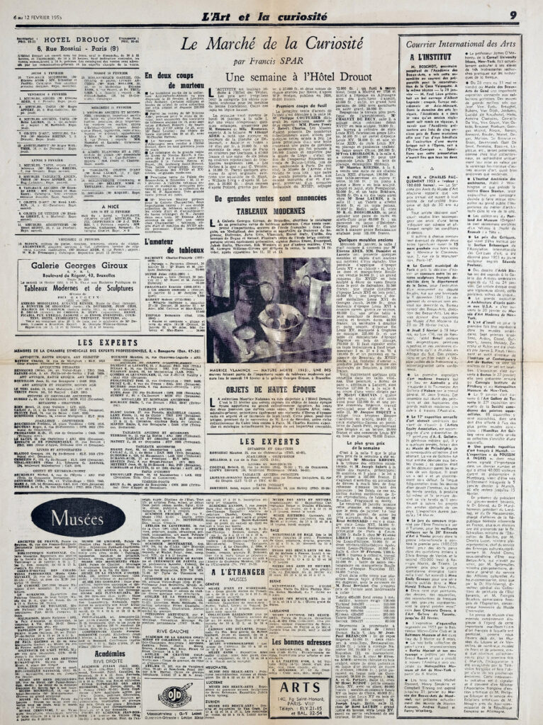Απόκομμα του περιοδικού “Arts”, 06-12/02/1953, έντυπο, στα γαλλικά, χαρτί, διπλής όψης, 59×43 εκ., όπου δημοσιεύεται άρθρο του Γάλλου ιστορικού και κριτικού τέχνης A. Chatelet. Το απόσπασμα εικονογραφείται.