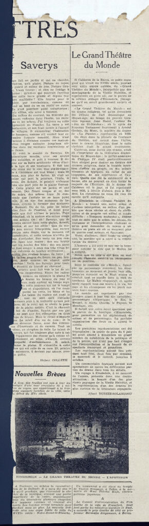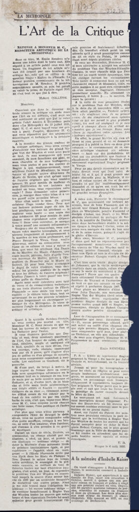 Απόκομμα, έντυπο, στα γαλλικά, χαρτί, διπλής όψης, 54×14 εκ. Πάνω από τον τίτλο, επιγραφή με τα στοιχεία έκδοσης.