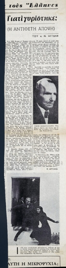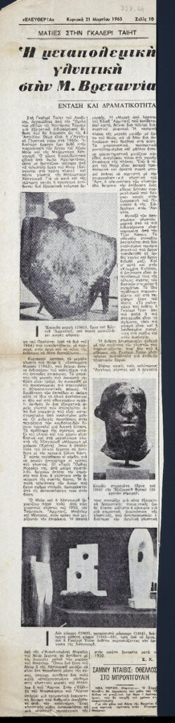 Απόκομμα της εφημερίδας “Ελευθερία”, έντυπο, στα ελληνικά, χαρτί, διπλής όψης, 53×11,5 εκ., όπου δημοσιεύεται άρθρο για τις τέχνες στην Βρετανία. Το απόσπασμα εικονογραφείται.