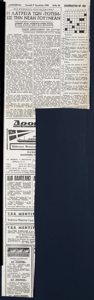 Απόκομμα της εφημερίδας “Ελευθερία” (05/10/1958).