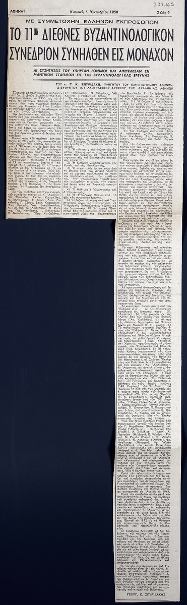Το 11ον διεθνές βυζαντινολογικόν συνέδριον συνήλθεν εις Μόναχον