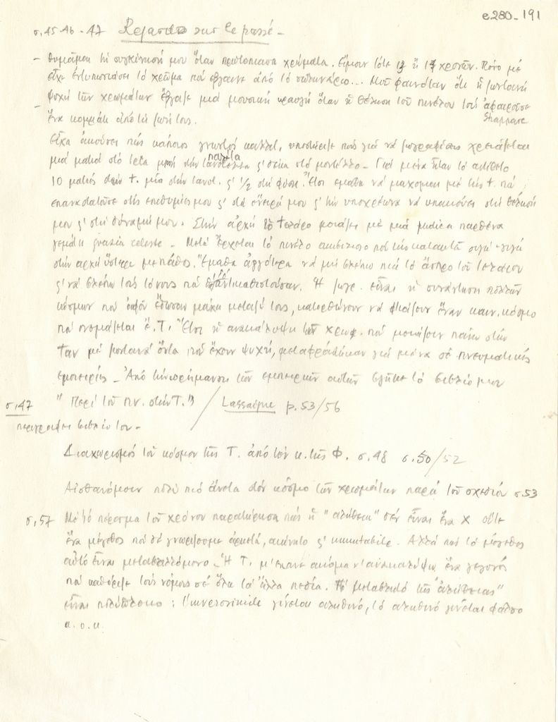 Χειρόγραφες σημειώσεις του Τώνη Σπητέρη “Regards sur le passé”