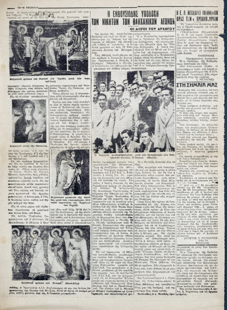 Απόκομμα της εφημερίδας “Η Νεολαία” (25/09/1938), όπου δημοσιεύεται άρθρο σχετικά με τους θησαυρούς που φυλάσσονται στις ιταλικές βιβλιοθήκες.