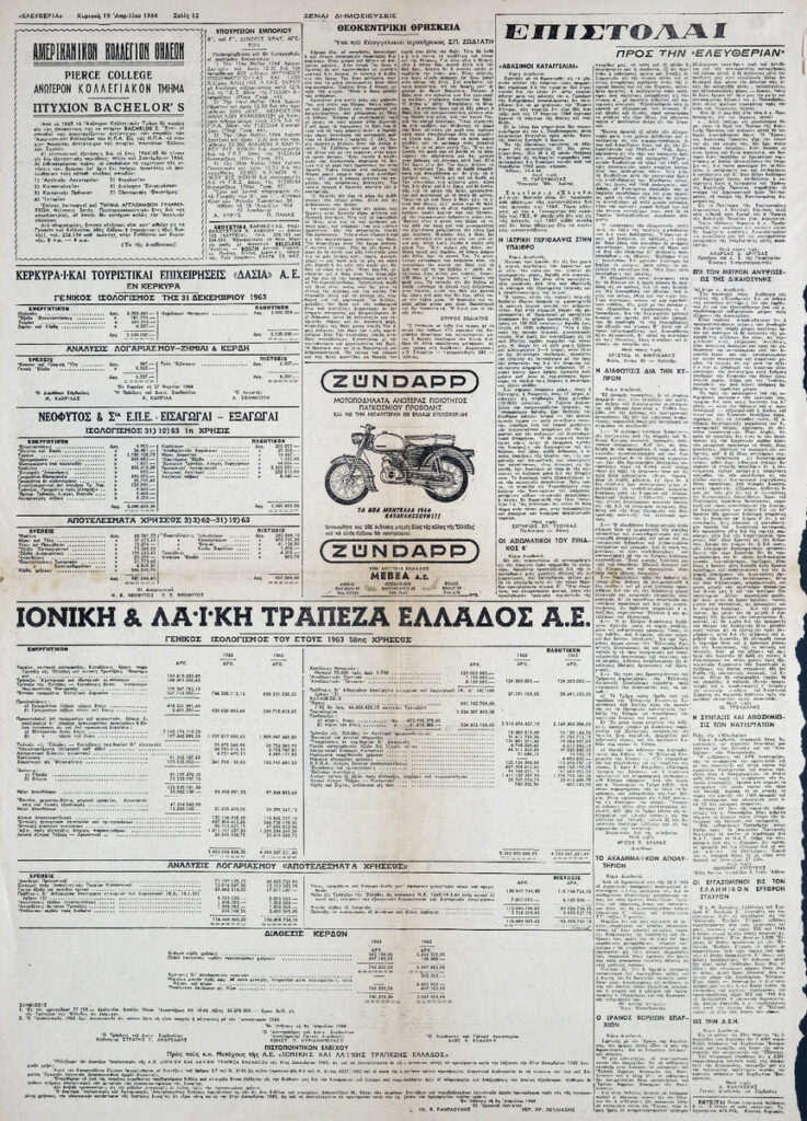 Απόκομμα της εφημερίδας “Ελευθερία” (19/04/1964).