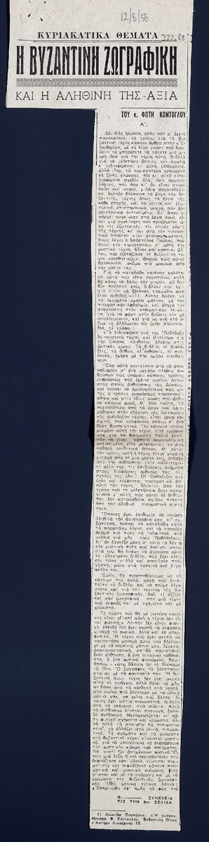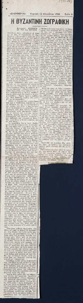 Απόκομμα της εφημερίδας “Ελευθερία” (12/08/1956).