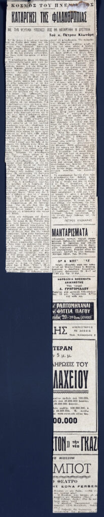Απόκομμα της εφημερίδας “Ελευθερία” (28/06/1952).