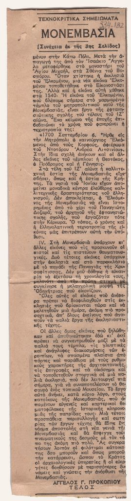Απόκομμα της εφημερίδας “Η Καθημερινή”, έντυπο, στα ελληνικά, χαρτί, διπλής όψης.