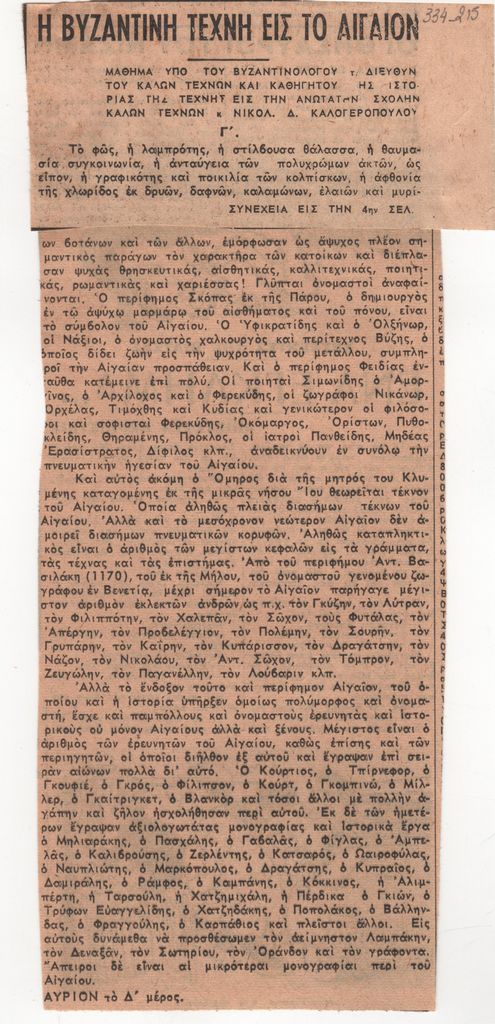 Η βυζαντινή τέχνη εις το Αιγαίον, Γ΄ μέρος
