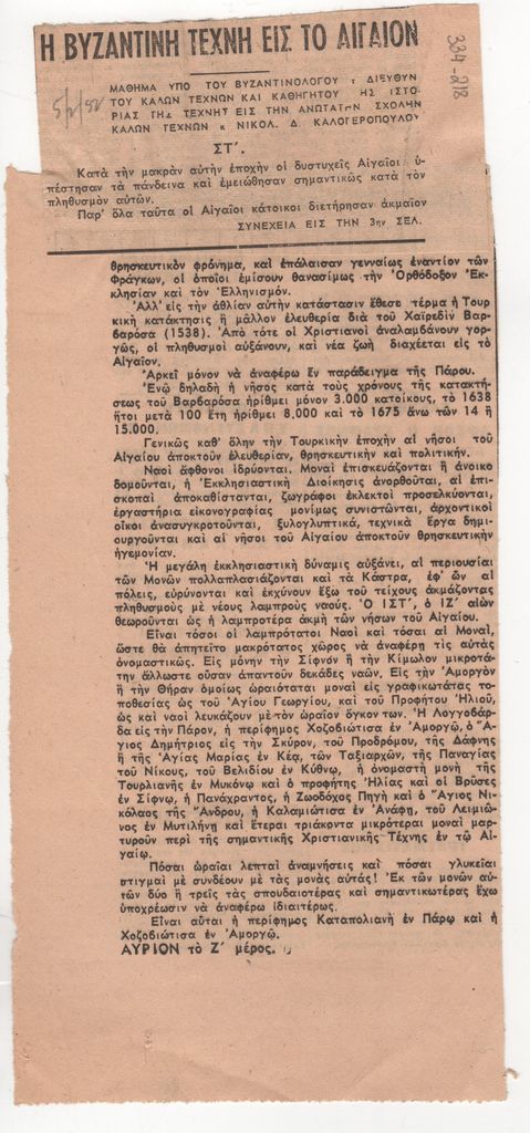 Η βυζαντινή τέχνη εις το Αιγαίον, ΣΤ΄ μέρος