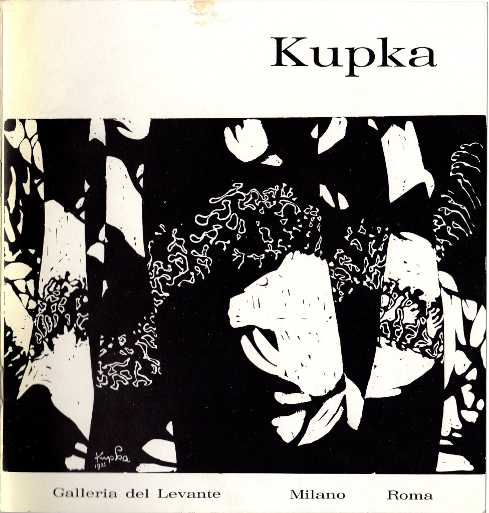 Έντυπο, στα ιταλικά, οκτασέλιδο, χαρτί ιλουστρασιόν, 20,0×19,0 εκ. Κατάλογος της ατομικής έκθεσης έργων του Τσέχου ζωγράφου Frantisek Kupka στο Μιλάνο και τη Ρώμη την άνοιξη του 1964. Περιέχει κείμενο για ον καλλιτέχνη της Giulia Veronesi, χρονολογικό βιογραφικό, βιβλιογραφία, κατάλογο των έργων της έκθεσης και εικονογράφηση.