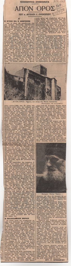 Απόκομμα της εφημερίδας “Η Καθημερινή “, έντυπο, στα ελληνικά, χαρτί, δύο όψεις, όπου δημοσιεύεται άρθρο του τεχνοκριτικού Άγγ. Γ. Προκοπίου. Το απόσπασμα εικονογραφείται. Δεξιά από τον τίτλο, επιγραφή με στοιχεία της έκδοσης.