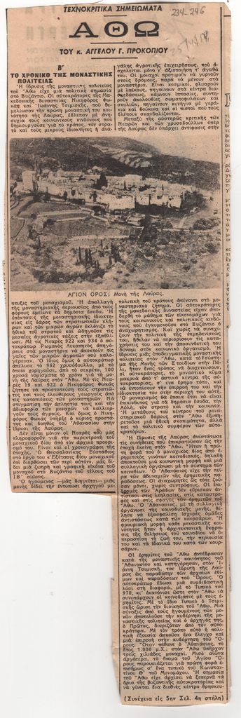 Απόκομμα της εφημερίδας “Η Καθημερινή “, έντυπο, στα ελληνικά, χαρτί, δύο όψεις, όπου δημοσιεύεται άρθρο του τεχνοκριτικού Άγγ. Γ. Προκοπίου. Το απόσπασμα εικονογραφείται. Δεξιά από τον τίτλο, επιγραφή με στοιχεία της έκδοσης.