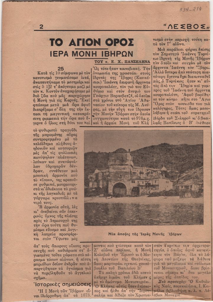 Απόκομμα της εφημερίδας “Λέσβος”, έντυπο, στα ελληνικά, χαρτί, διπλής όψης.