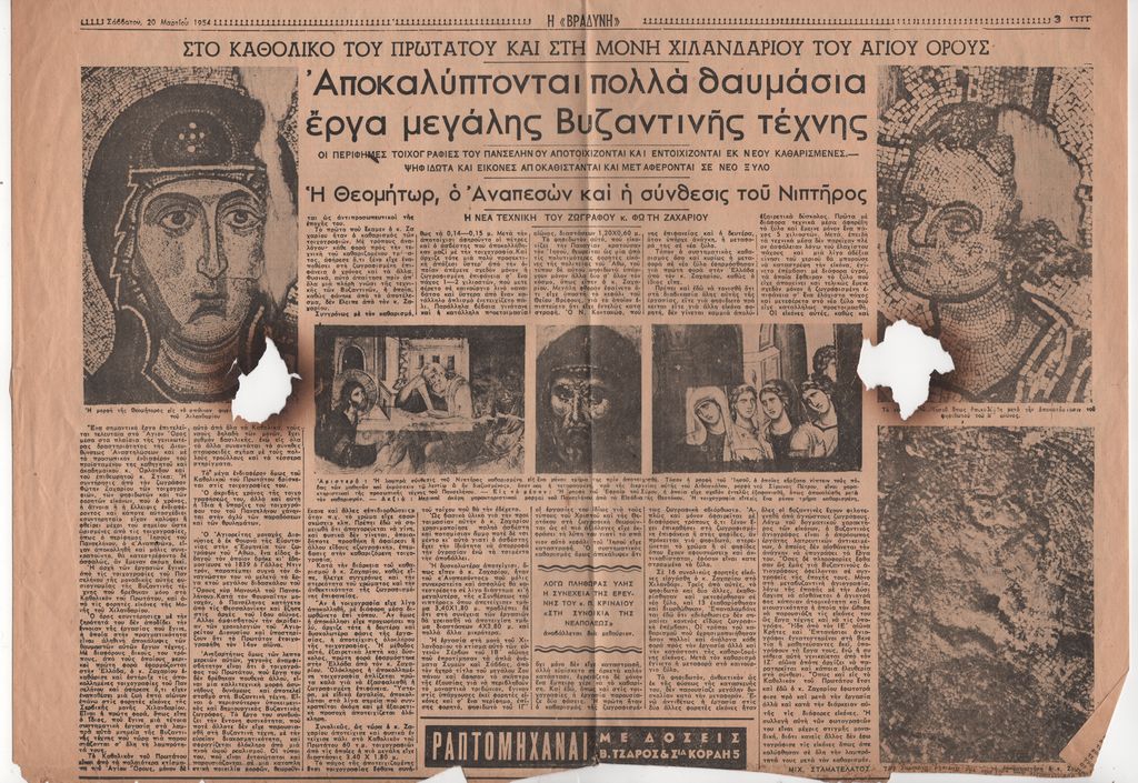 Στο Καθολικό του Πρωτάτου και στη Μονή Χιλανδαρίου του Αγίου Όρους. Αποκαλύπτονται πολλά θαυμάσια έργα μεγάλης βυζαντινής τέχνης