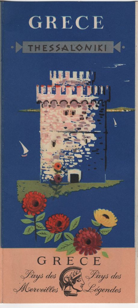 Έντυπο, στα γαλλικά, χαρτί, διπλής όψης, Τουριστικό φυλλάδιο του Εθνικού Οργανισμού Τουρισμού για την πόλη της Θεσσαλονίκης. Εκτύπωση: «Γραφικές τέχνες Κ. Κοντογόνης – Α. Μαλικούτης»