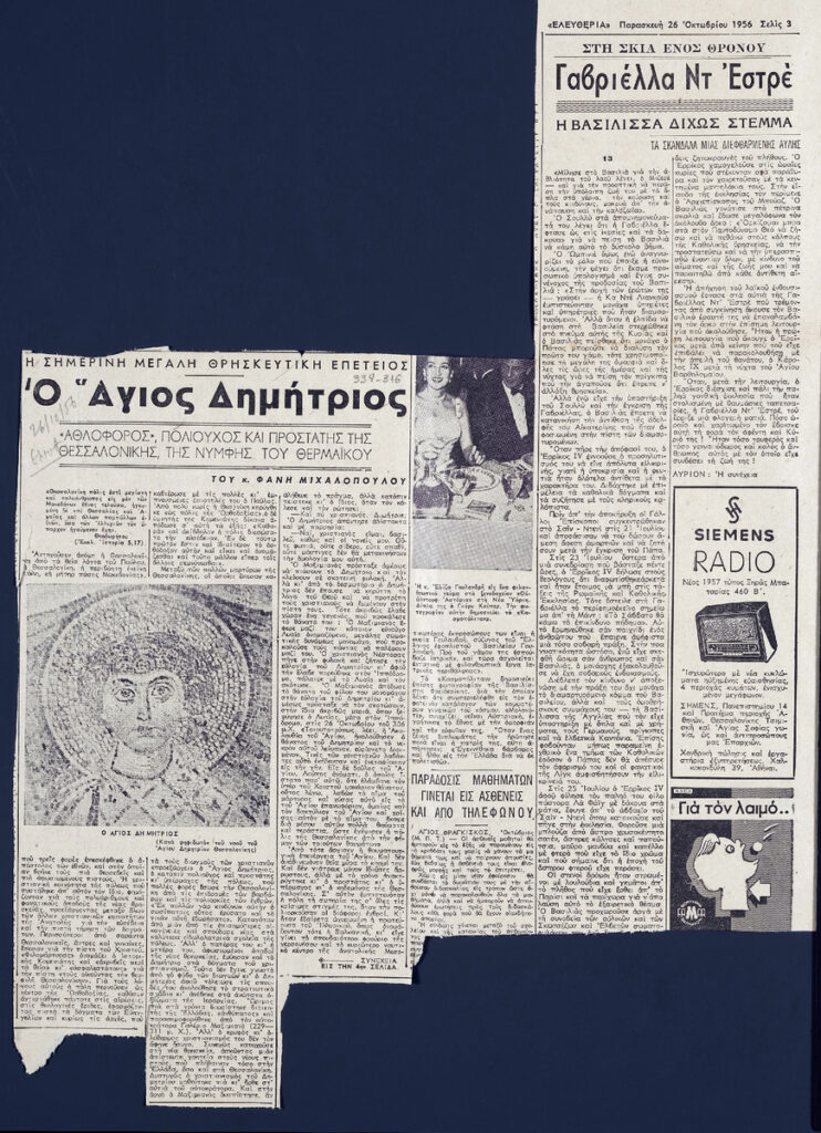 Απόκομμα της εφημερίδας “Ελευθερία” (26/10/1956).