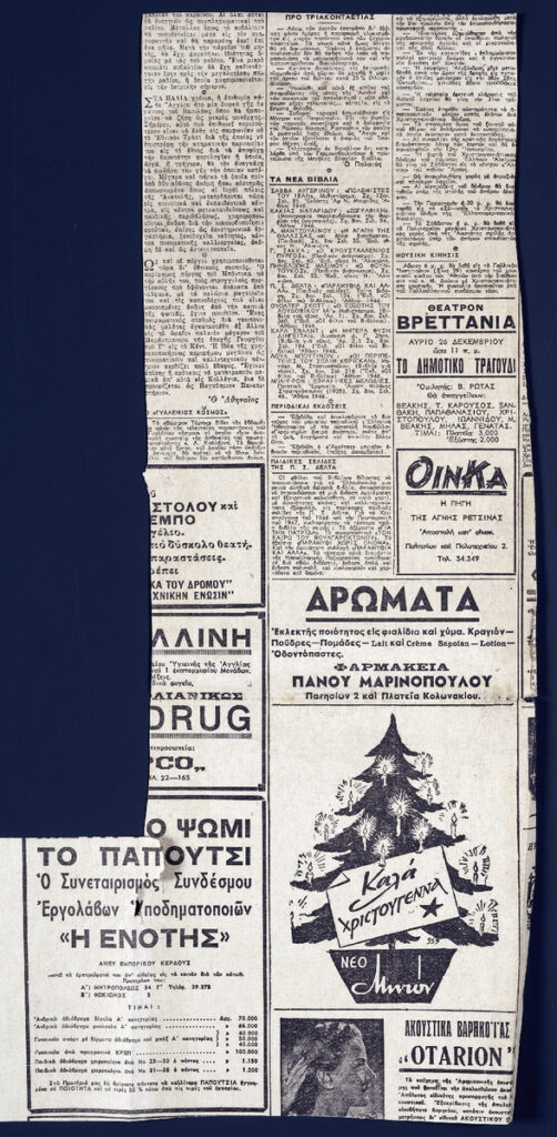 Απόκομμα της εφημερίδας “Καθημερινή” (25/12/1946).