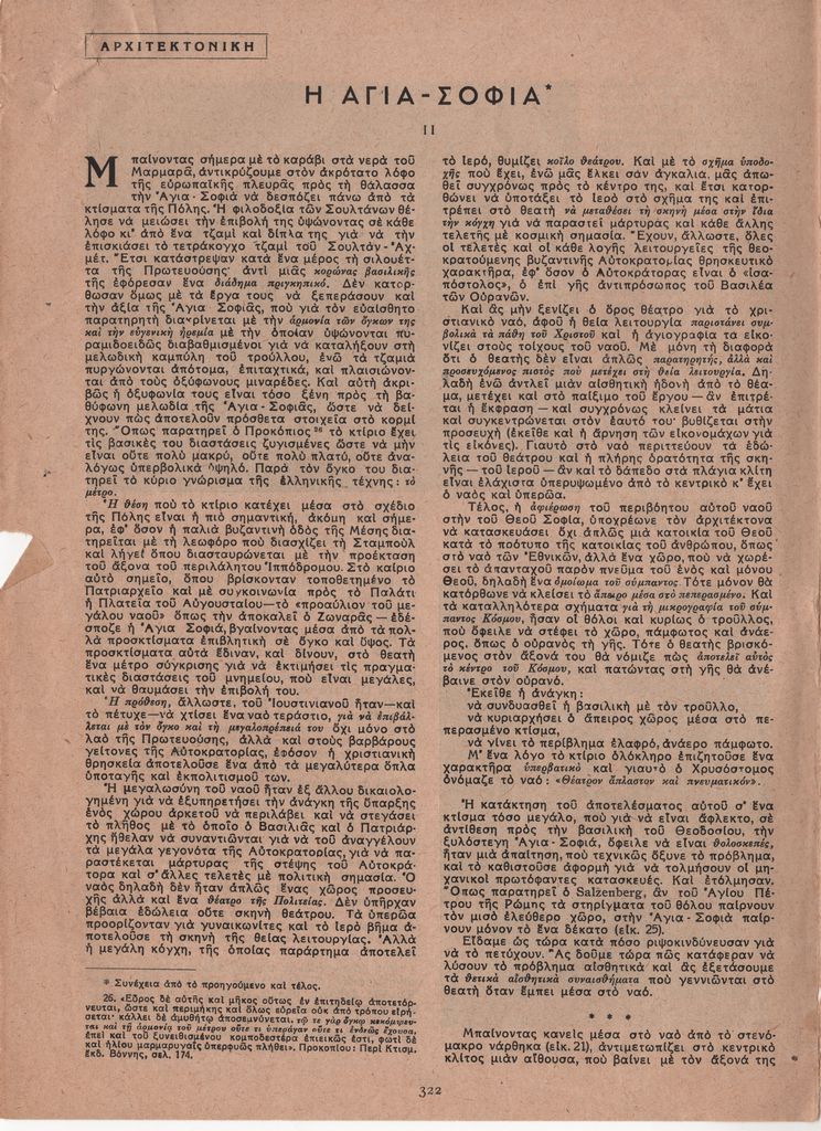 Απόκομμα του περιοδικού “Αγγλοελληνική Επιθεώρηση”, έντυπο, στα ελληνικά, χαρτί, δύο φύλλα διπλής όψης, όπου δημοσιεύεται άρθρο του αρχιτέκτονα Π. Α. Μιχελή. Στο ίδιο απόκομμα: απόσπασμα άρθρου του Νίκου Χατζηκυριάκου-Γκίκα.
