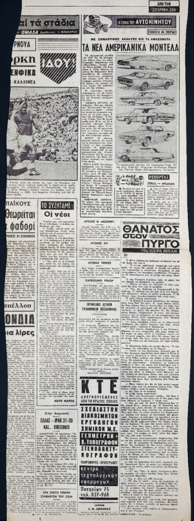 Απόκομμα της εφημερίδας “Το Βήμα” (28/08/1966).
