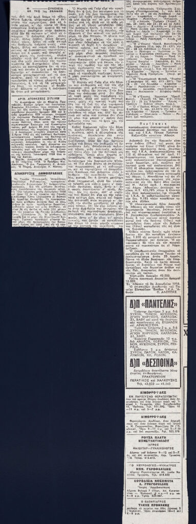 Απόκομμα εφημερίδας (06/12/1958).