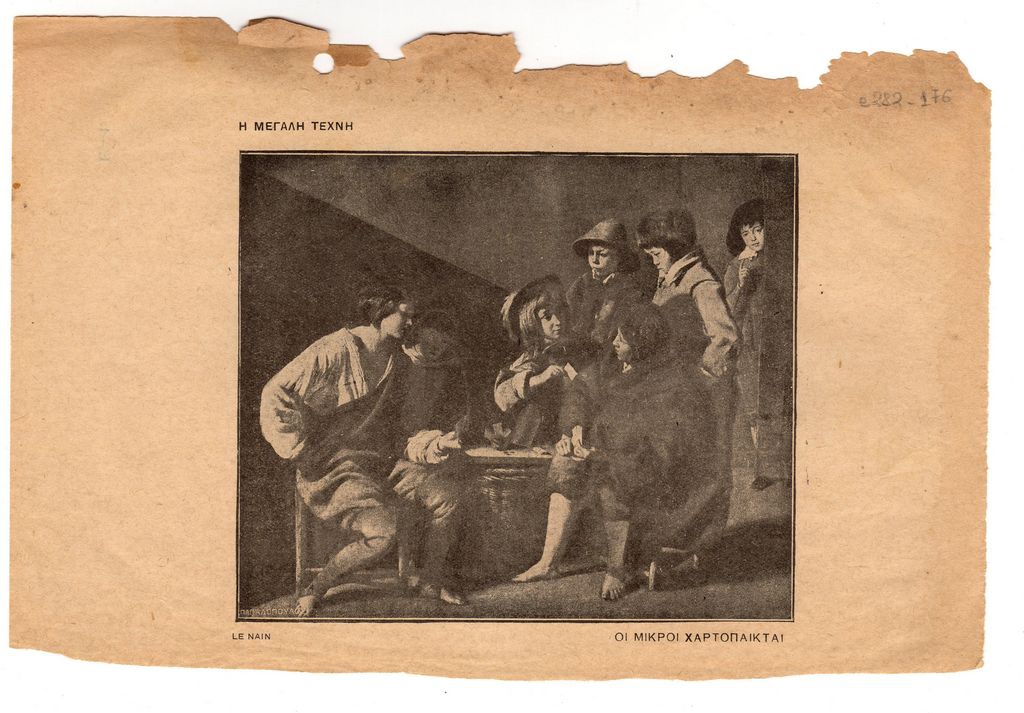 Απόκομμα, χαρτί, 17×25 εκ., με α/μ αναπαραγωγή έργου των αδερφών Le Nain.