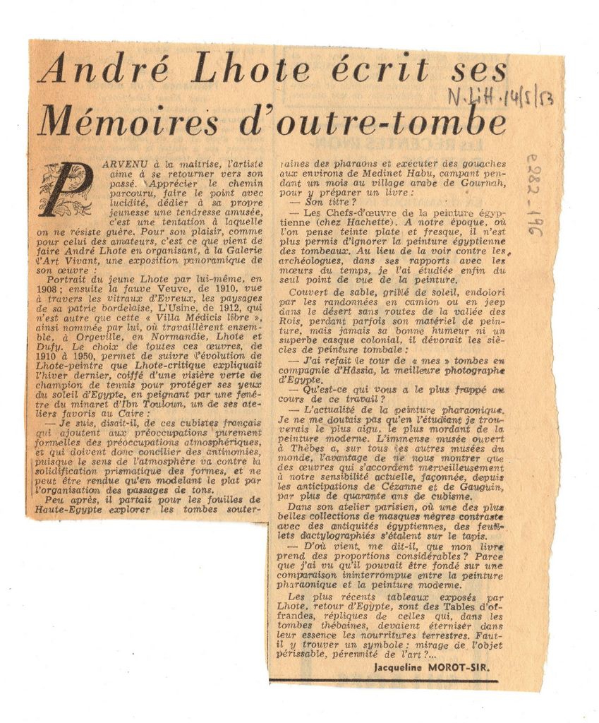 André Lhote écrit ses Mémoires d’ outre-tombe