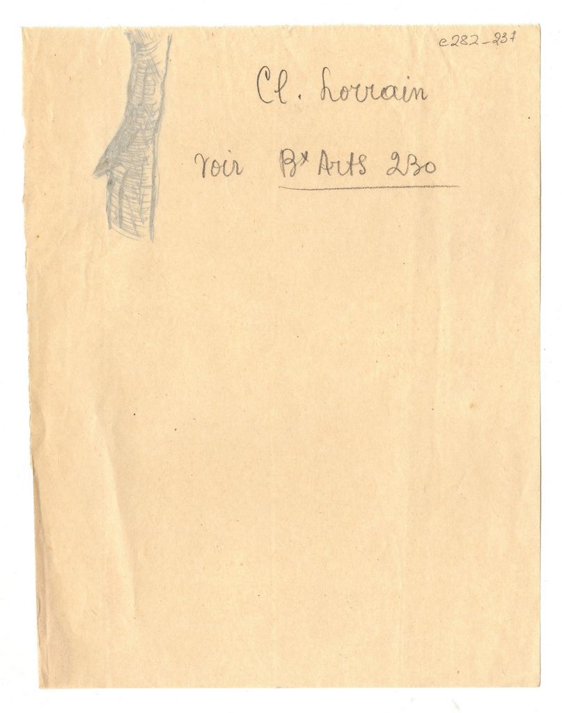 Απόκομμα, χαρτί, 19,5×15 εκ., στα γαλλικά, με χειρόγραφη σημείωση του Τώνη Σπητέρη, βιβλιογραφική παραπομπή για τον Claude Lorrain.