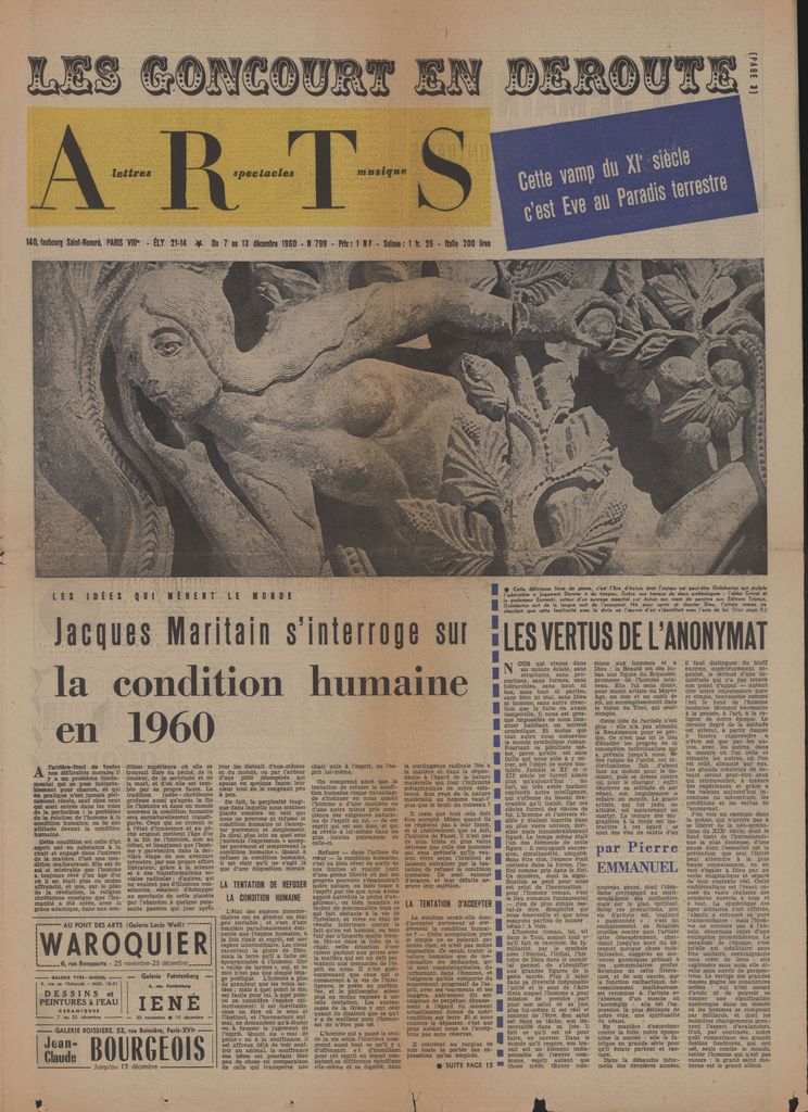Απόκομμα, χαρτί, 60×42 εκ., στα γαλλικά, δημοσίευσης κειμένου του Fernand Léger, στο οποίο αναφέρεται σε ταξίδι του στις Ηνωμένες Πολιτείες και προέρχεται από έκδοση του καλλιτέχνη, όπου αφηγείται αναμνήσεις του απο εκεί.
