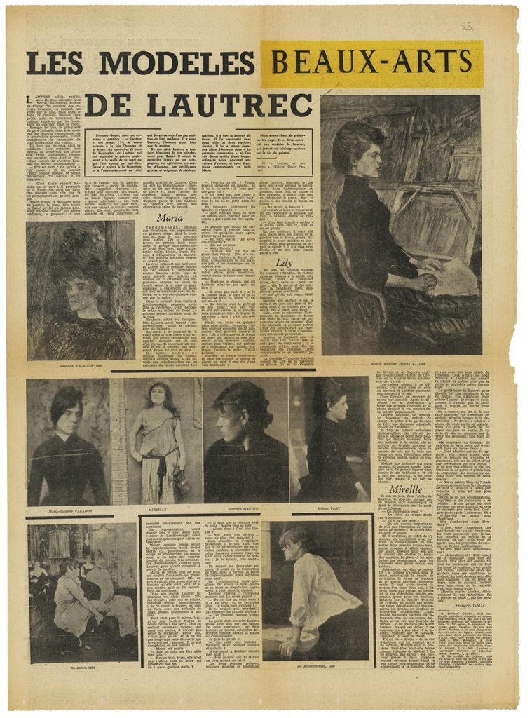 Απόκομμα, χαρτί, 60 x 43 εκ., στα γαλλικά, δημοσίευσης άρθρου το οποίο μεταφέρει απόσπασμα κειμένου βιβλίου του François Gauzi για τον Toulouse Lautrec. Στο απόσπασμα δίνονται πληροφορίες για τις γυναίκες-μοντέλα που πρωταγωνιστούν σε έργα του καλλιτέχνη.