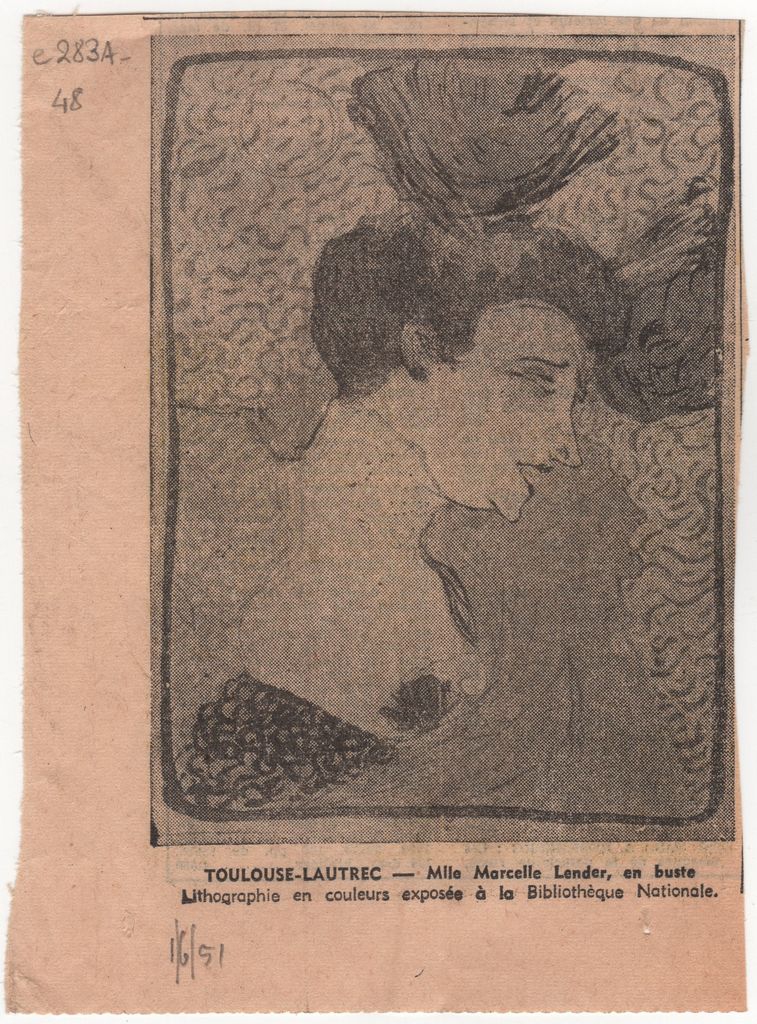 Απόκομμα εντύπου, χαρτί, 16 x 11.5 εκ., με α/μ αναπαραγωγή έργου του Toulouse Lautrec.