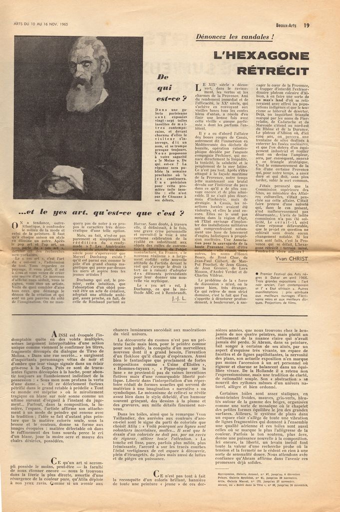 Απόκομμα, έντυπο, δισέλιδο, χαρτί, 42,5×29,2 εκ., όπου δημοσιεύεται, στα γαλλικά, άρθρο του André Masson για το πρόγραμμα της εικονογράφησης της οροφής του Odéon στο Παρίσι. Περιέχει απόσπασμα κειμένου του Pierre Cabanne.