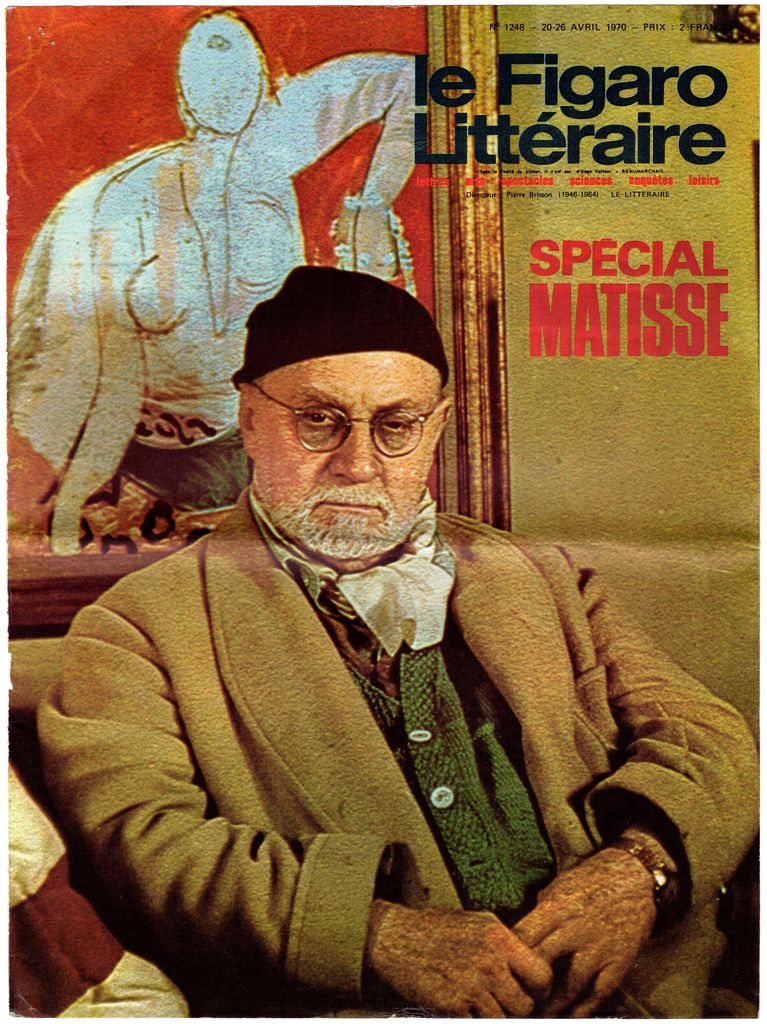 Απόκομμα, χαρτί, 36×27 εκ., στα γαλλικά, δημοσίευσης άρθρου αναφερόμενου στο εικαστικό έργο του Henri Matisse, με αφορμή αναδρομική έκθεση η οποία διεξάγεται στο Grand Palais στο Παρίσι. Εντάσσεται σε αφιέρωμα του εντύπου στον καλλιτέχνη.