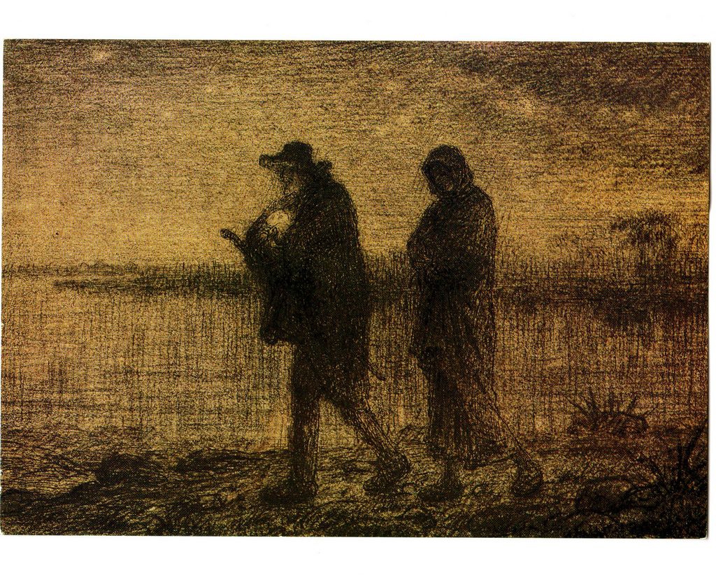 Ταχυδρομική κάρτα, χαρτόνι διπλής όψης, 10.5×15 εκ., στα γαλλικά, με έγχρωμη αναπαραγωγή έργου του J. – F. Millet, το οποίο παρουσιάστηκε σε αναδρομική έκθεση αφιερωμένη στον καλλιτέχνη στo Grand Palais στο Παρίσι.
