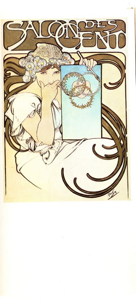 Πρόσκληση, χαρτόνι αναδιπλωμένο, 21×10.5 εκ., στα γαλλικά, έκθεσης του Alphonse Mucha, η οποία διεξάγεται στο Grand Palais στο Παρίσι.