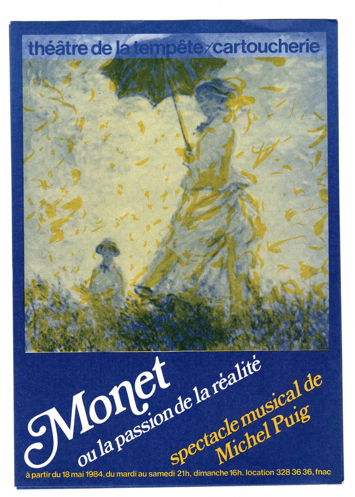 Έντυπο, χαρτί διπλής όψης, 21×15 εκ., στα γαλλικά, της μουσικοθεατρικής παράστασης του Michel Puig, αφιερωμένης στον Claude Monet. Στην πίσω όψη, πληροφορίες για τους συντελεστές και τα μέρη της.