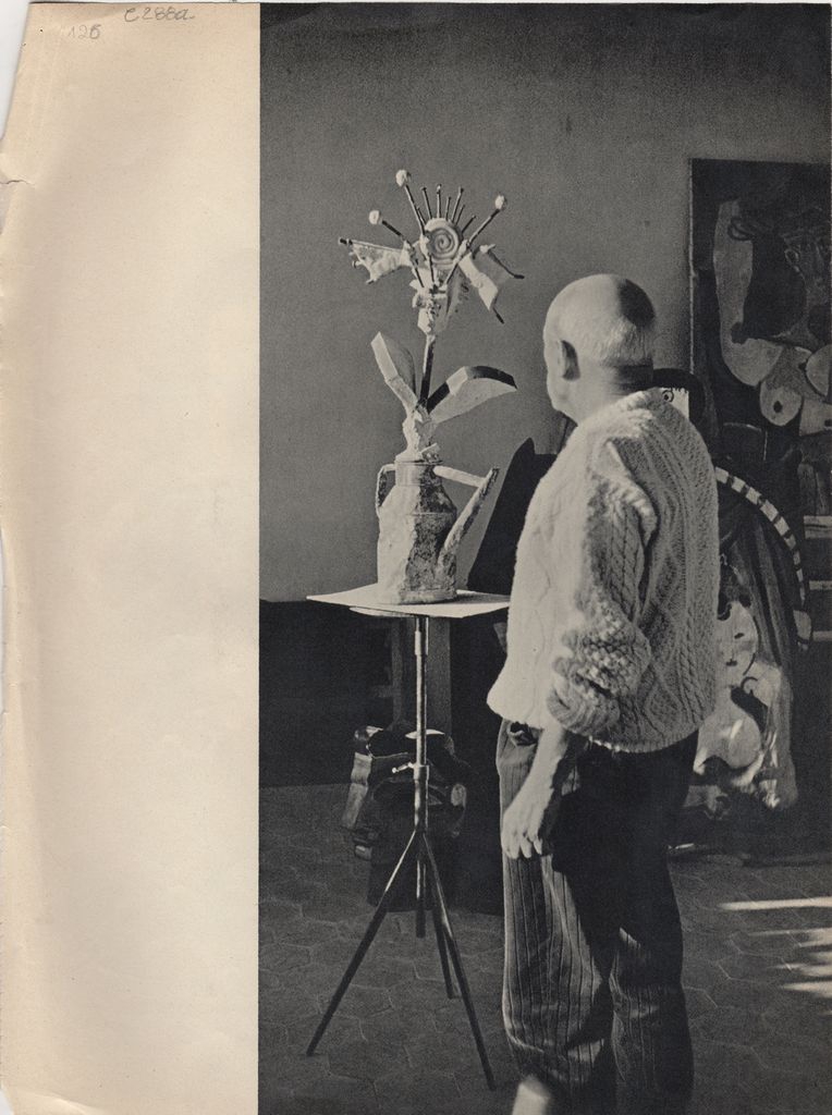 Απόκομμα εντύπου, χαρτί, 32.5×24 εκ., με α/μ αναπαραγωγή φωτογραφίας του Pablo Picasso με έργο του.
