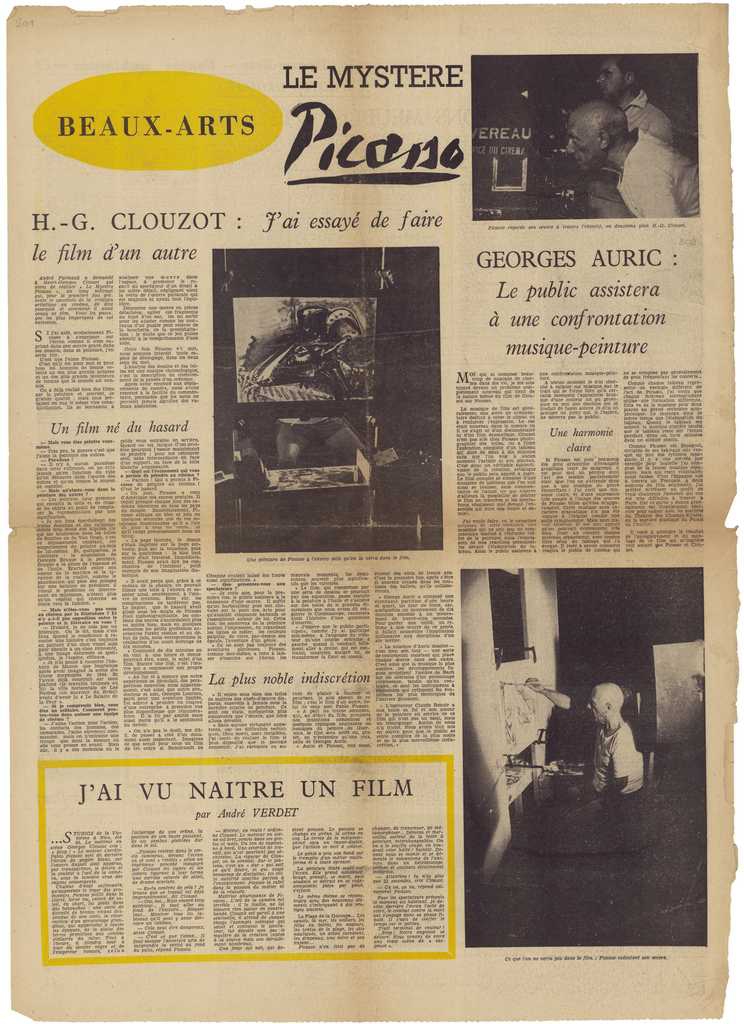 Απόκομμα, χαρτί, 60×43 εκ., στα γαλλικά, δημοσίευσης άρθρου αναφερόμενου στη μουσική της ταινίας του H. G. Clouzot για τον Pablo Picasso.