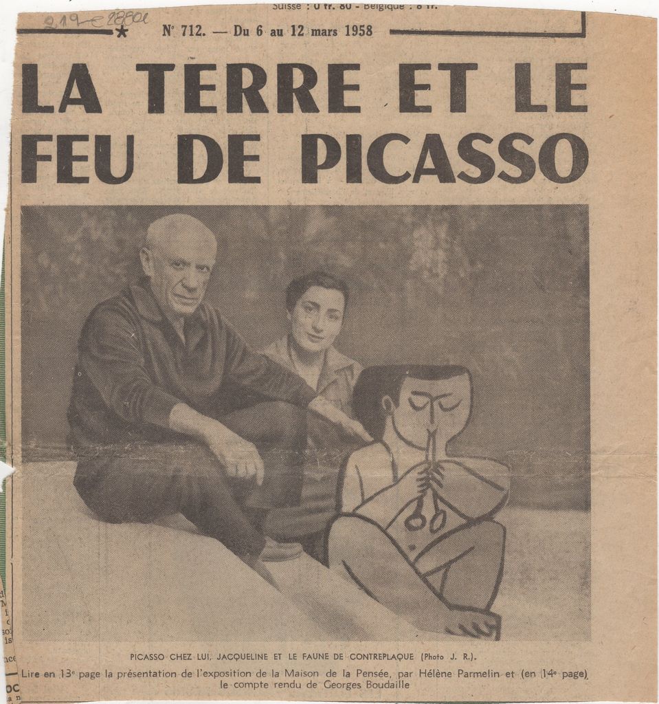Απόκομμα, χαρτί, 23×22 εκ., στα γαλλικά, δημοσίευσης φωτογραφίας του Pablo Picasso.