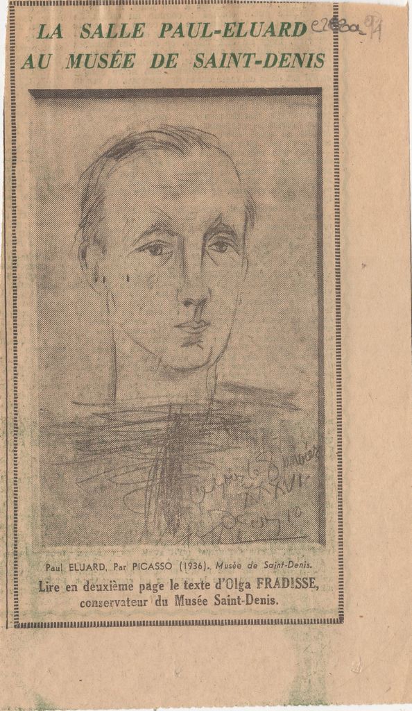 Απόκομμα εντύπου, χαρτί, 20×11.5 εκ., με αναπαραγωγή έργου, α/μ, του Pablo Picasso. Το έργο παρουσιάζεται στο Μουσείο του Σεν Ντενί.